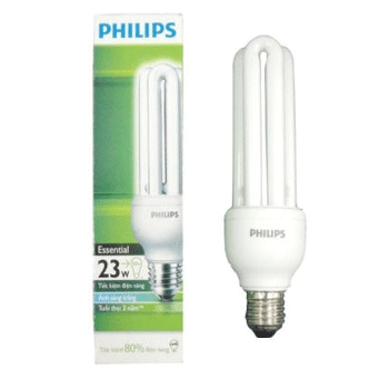 1. Bóng đèn compact Philips 23W Essential 3U có cấu tạo dạng thẳng, dài hình chữ U, đuôi đèn E27.