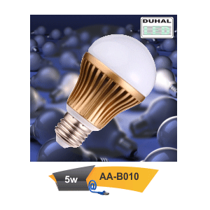 1. Bóng đèn Led Duhal AA-B010 5W được sản xuất với một mẩu duy nhất đó là dòng 5W với hai màu trắng 6000k và vàng 3000k.