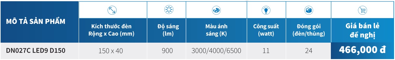 + Ánh sáng : 3000K (Vàng) / 4000K (Trung Tính)/ 6500K ( Trắng )