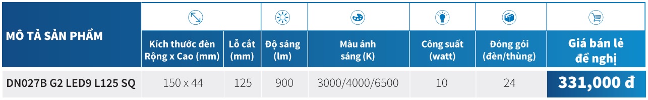 - Mã Hàng : DN027B G2 LED9 L125 SQ