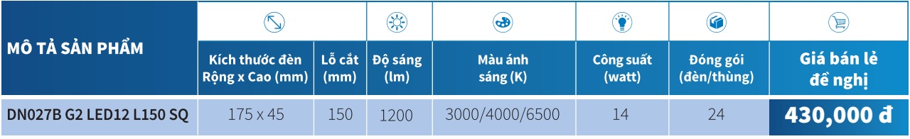 - Mã Hàng : DN027B G2 LED12 L150 SQ