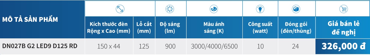 - Mã Hàng : DN027B G2 LED9 D125 RD