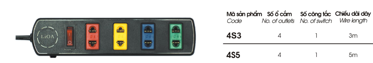 Ổ cắm kéo dài phổ thông 2200w 4 ổ đen
